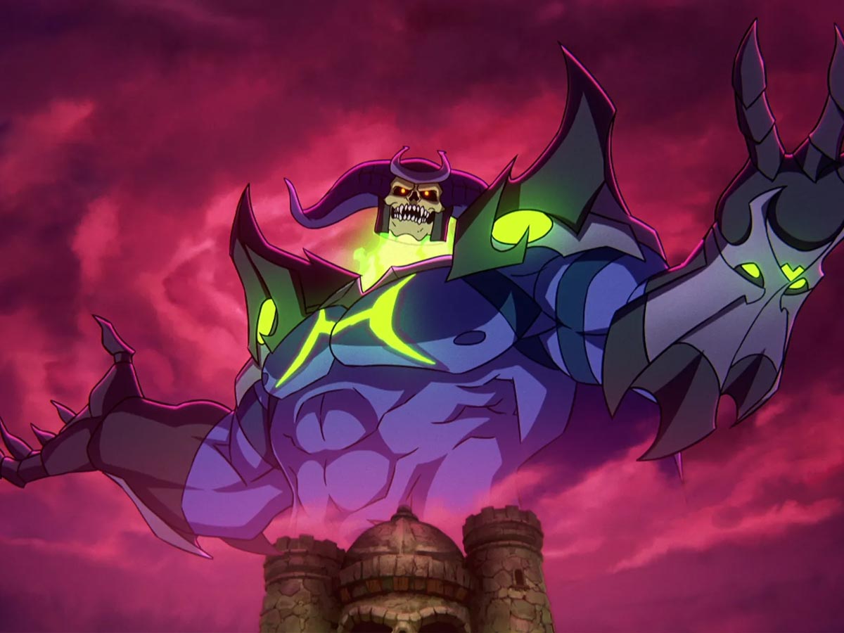 The resulting powered-up look is the type of fantastic iteration meant to sell a new action figure to die-hard fans: Skeletor grows even bigger, sprouts ram horns, and has a flame-encrusted neck. His power-up is one of the What If… fantasies that the show responds to, not as fan-service, but in ways that present some sort of character-focused challenge.