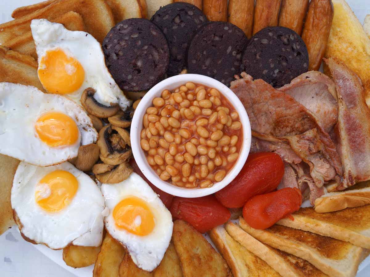 Are you in love with your grilled breakfast? How about one of the four fried slices, four of the toast, four of the pancakes, six of the sausages, six of the bacon, six of the hash browns, four of the black pudding, the plum tomatoes, the beans, and the mushrooms? Can you do it in 45 minutes? You’ll get it for free, if so. It’s £20, otherwise. Only once has it been beaten.