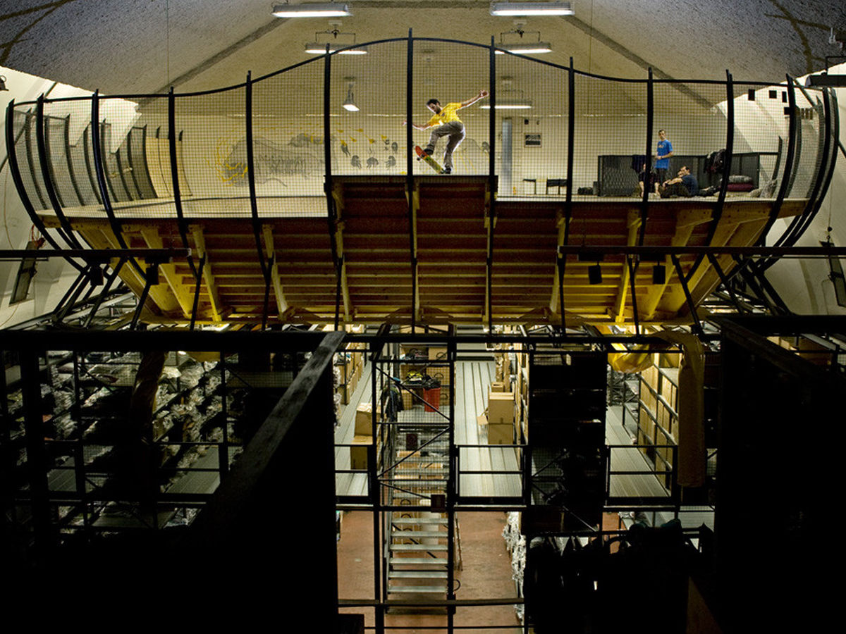 10. Comvert – Milan: Clothing company Comvert’s office in Milan, Italy is one of the coolest in the world. An abandoned cinema hall was renovated in a quirky style to set up the warehouse and a shop showcasing Comvert’s products. Above the warehouse is a suspended indoor skate bowl that was once the seating space for viewers who came to watch a movie. The office has many entertainment options to keep the employees fresh and motivated.