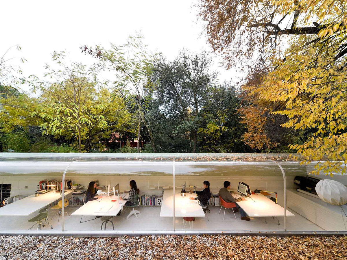1. Selgas Cano – Madrid: This one is my favourite and deserves to be at the top of the list. The office is half underground and a half above the ground, situated amid giant old trees. You can see greenery from the glass window panes. The office brings engineering and nature together and is built in a forest in Madrid, Spain. The office has some awesome fun slides, really delicious food and gaming areas.